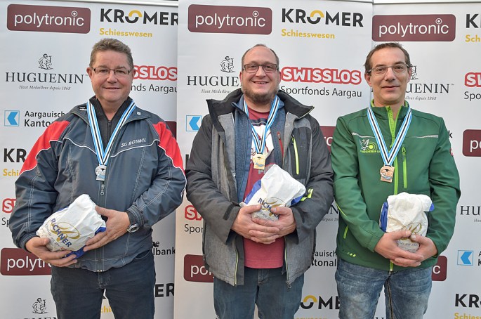 Siegerpodest der Kategorie D: (von links) Daniel Bucher (2.), Sieger Walter Schumacher und Claude Chenaux (3.)